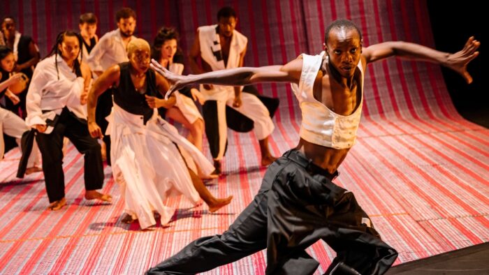 Dal Senegal all’Europa e viceversa. Il festival fiorentino il 3 ottobre al Teatro Puccini ha proposto, sempre in prima nazionale, “Until the Beginnings”, spettacolo firmato dalla coreografa, artista multidisciplinare e direttrice artistica della École des Sables Alesandra Seutin e da Stephanie Thierschl, direttrice artistica di Mouvoir, coreografa, artista multimediale tedesca. Con il suono della kora (strumento a corda dell’Africa occidentale dal suono melodico) e incursioni di altre sonorità, danzatori dal Senegal, dalla Germania e dalla Francia intrecciano movimento delle braccia e delle gambe e del corpo e passaggi sul palcoscenico che in più momenti richiamano forme di ballo di quei territori africani a sud del Sahara affacciati sull’Atlantico.