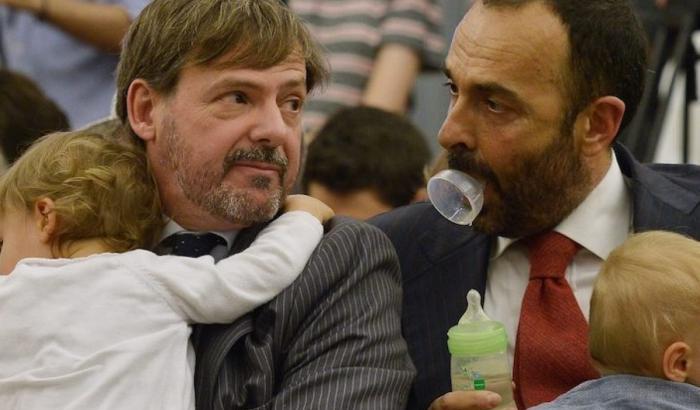 I paletti? «No ai matrimoni gay, no alle adozioni gay o all’utero in affitto, no alla reversibilità delle pensioni». E al giornalista che gli chiede una riflessione sul cambio di linea di Forza Italia sui gay, dice: «non commento, è la loro linea. Noi siamo un’altra cosa».