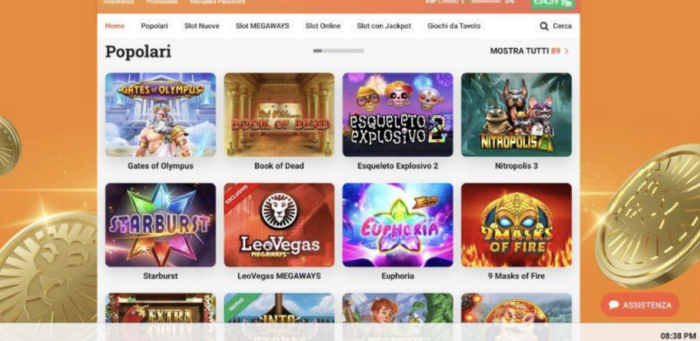 Il sito di LeoVegas è contraddistinto dal classico colore arancione, tratto distintivo del brand svedese.