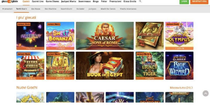 Gioco Digitale: una marea di slot machine per gli appassionati del genere. Tanti giochi da tavolo e casinò live. Fornitissimo palinsesto del bookmaker per piazzare scommesse sportive. Bonus di benvenuto per il casino fino a 500 euro.