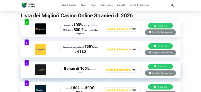 Casinostrider.it – Recensioni oneste di casinò online per italiani
