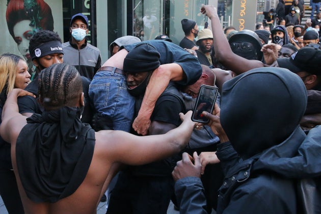Le manifestazioni di sabato si sono concluse con un centinaio di arresti scattati a seguito delle violenze degli estremisti di destra ai danni dei manifestanti Black Lives Matter. Dopo aver formato un cordone protettivo accanto all’uomo in difficoltà assieme ad un amico, Hutchinson se lo è caricato in spalle e lo ha consegnato nelle mani della polizia.